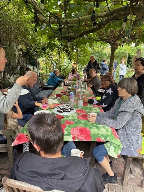 Bei Kaffee und Kuchen konnten sich Kunstinteressierte und Kunstschaffende bei regen Gesprächen bis in den Abend austauschen.